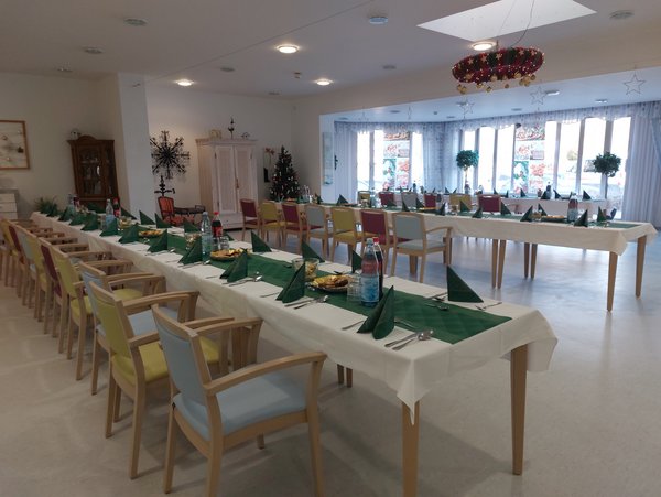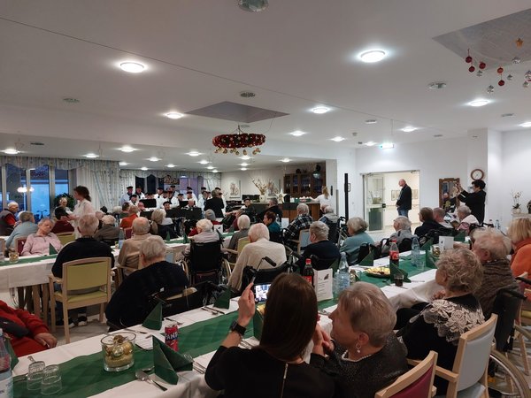 Die Bewohner*innen des Erich Wandel Seniorenzentrums feierten heute ihr Weihnachtsfest im großen Saal. Um 16 Uhr sollte es starten, aber schon einige Zeit zuvor, versammelten sich die Bewohner*innen vor der noch verschlossenen Tür und warteten auf Einlass.