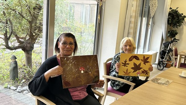 Neue Platzsets wurden herbstlich gestaltet. Die Freude stand des Bewohnern ins Gesicht geschrieben.